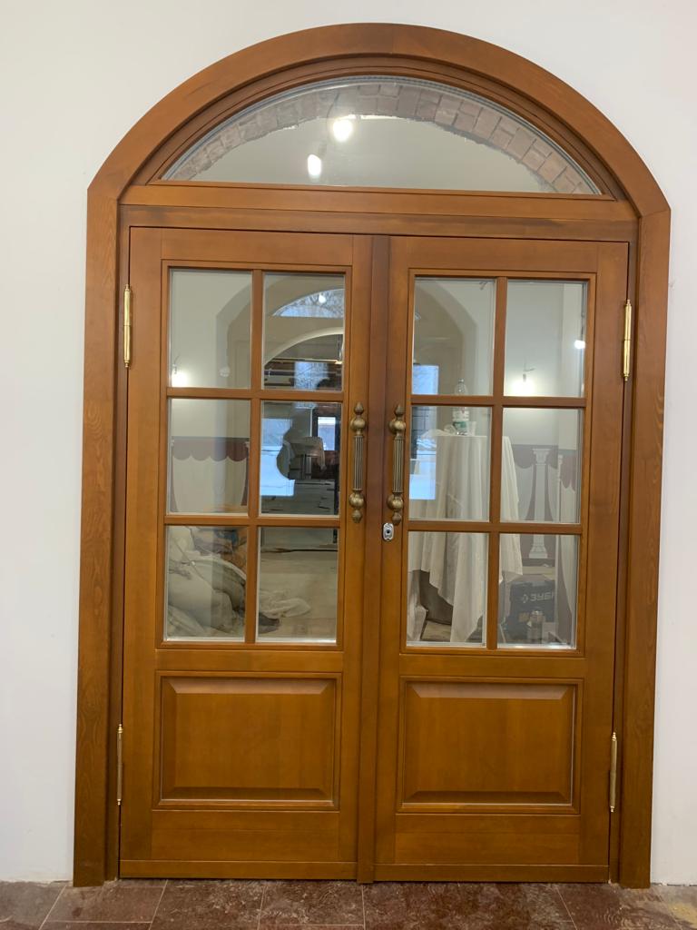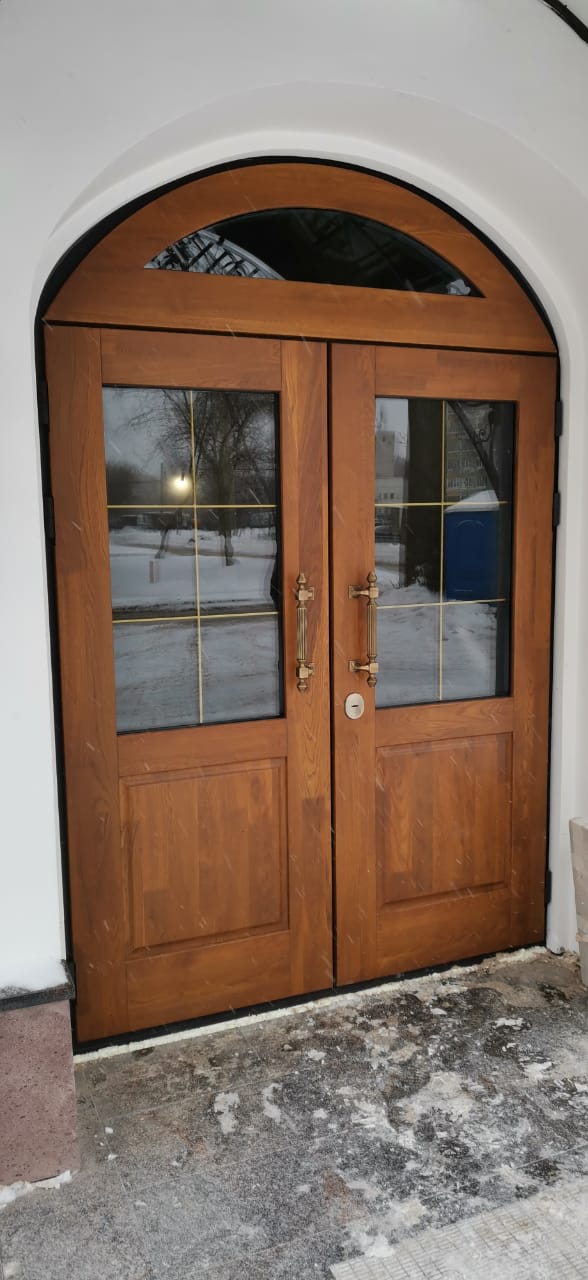 Входные деревянные двери со стеклопакетом