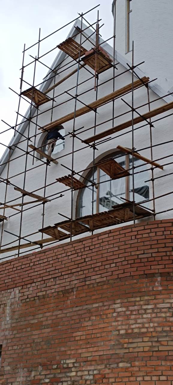 Изготовлены и установлены радиусные оконные конструкции из массива дуба.