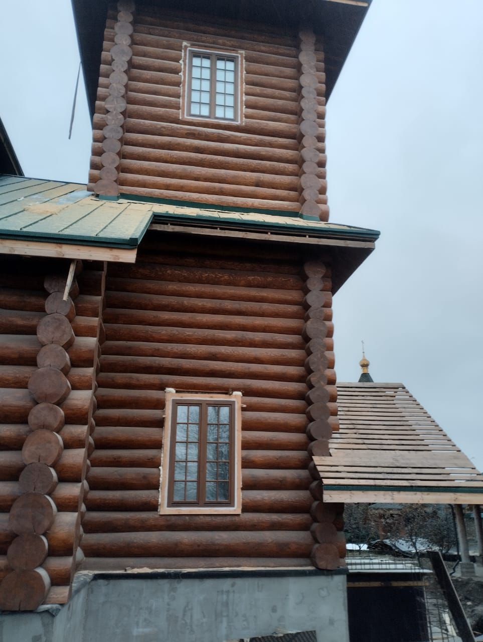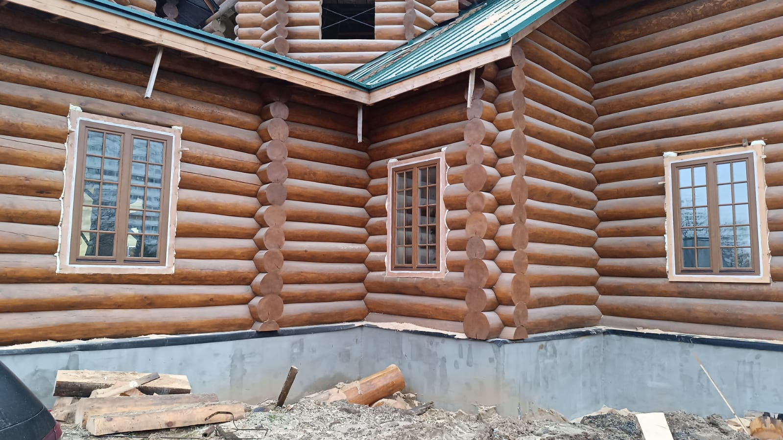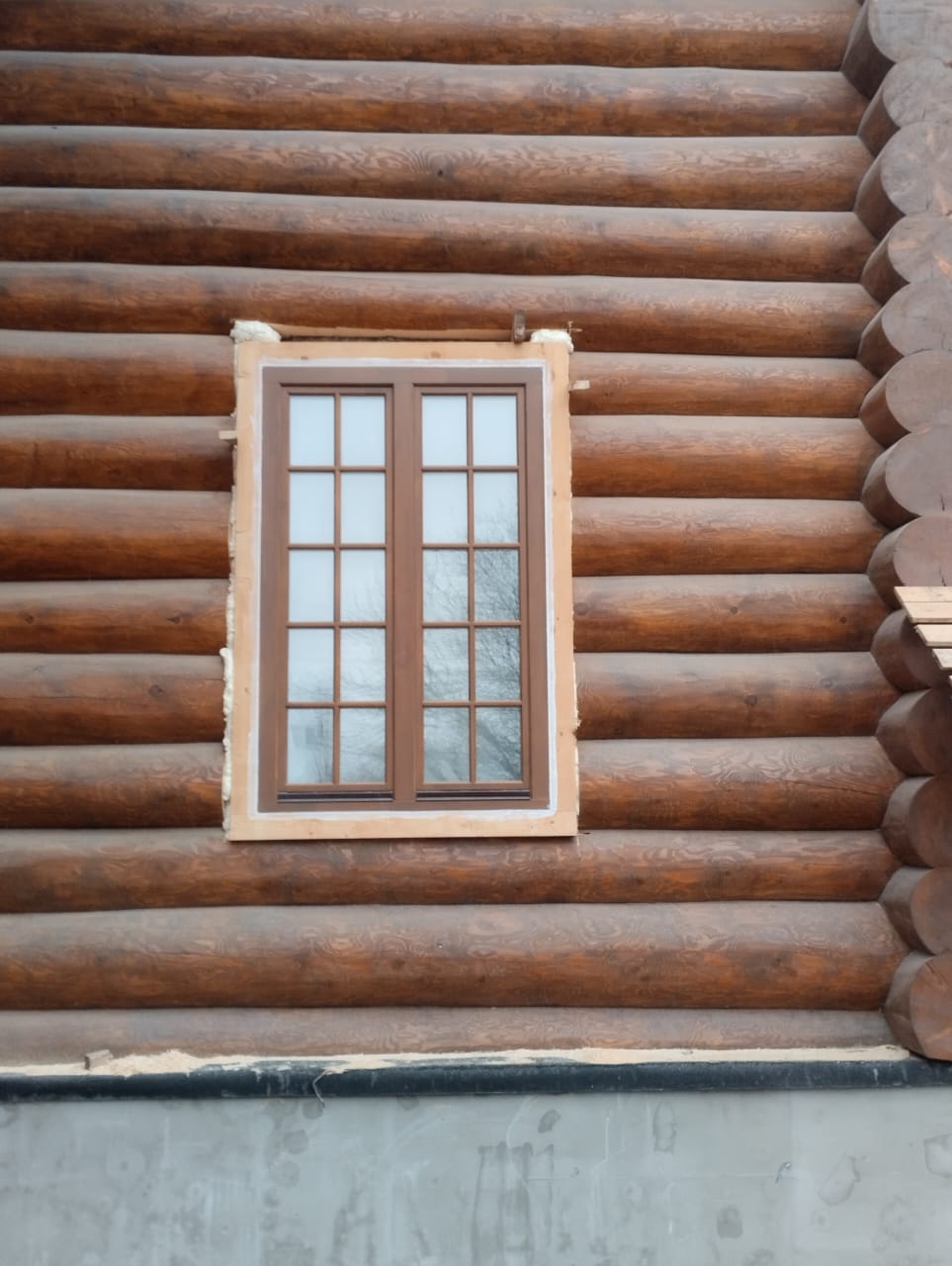 Изготовлены и установлены оконные блоки из сосны и входные двери из дуба.