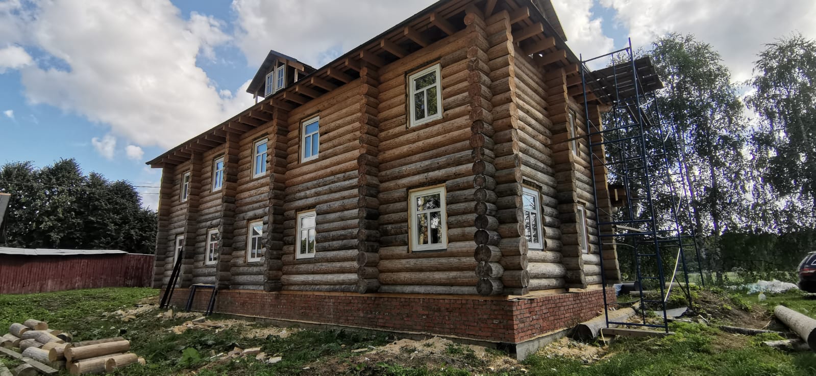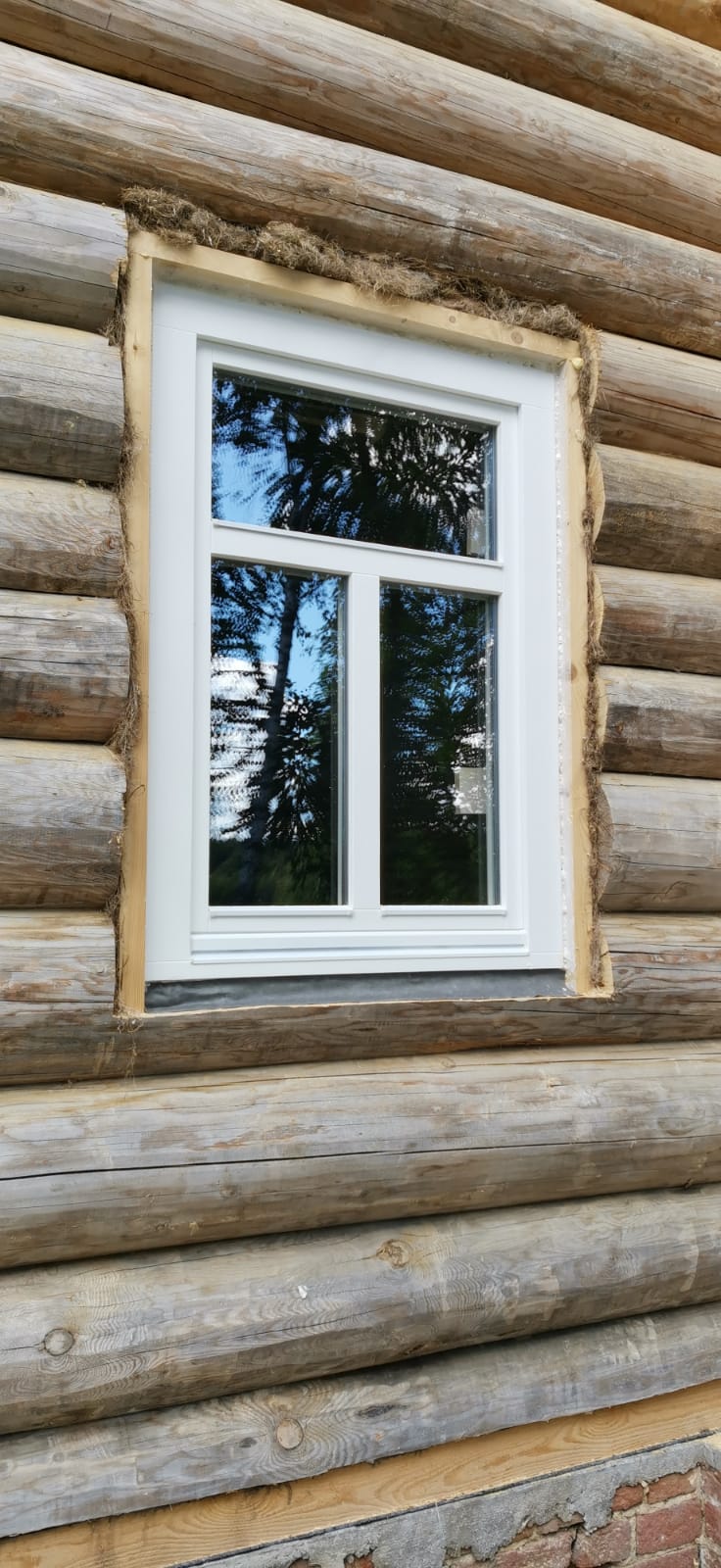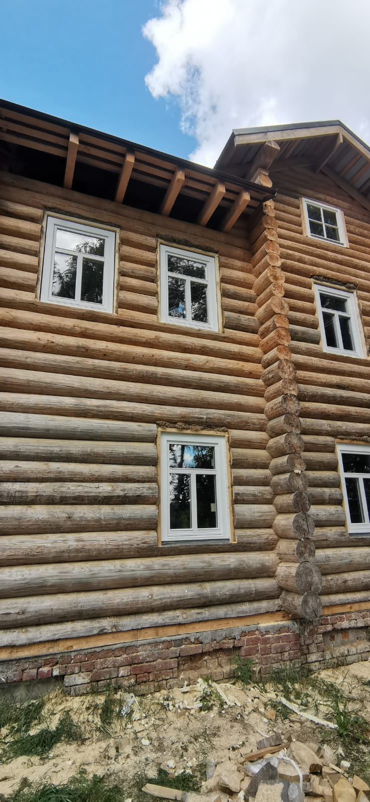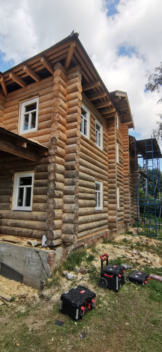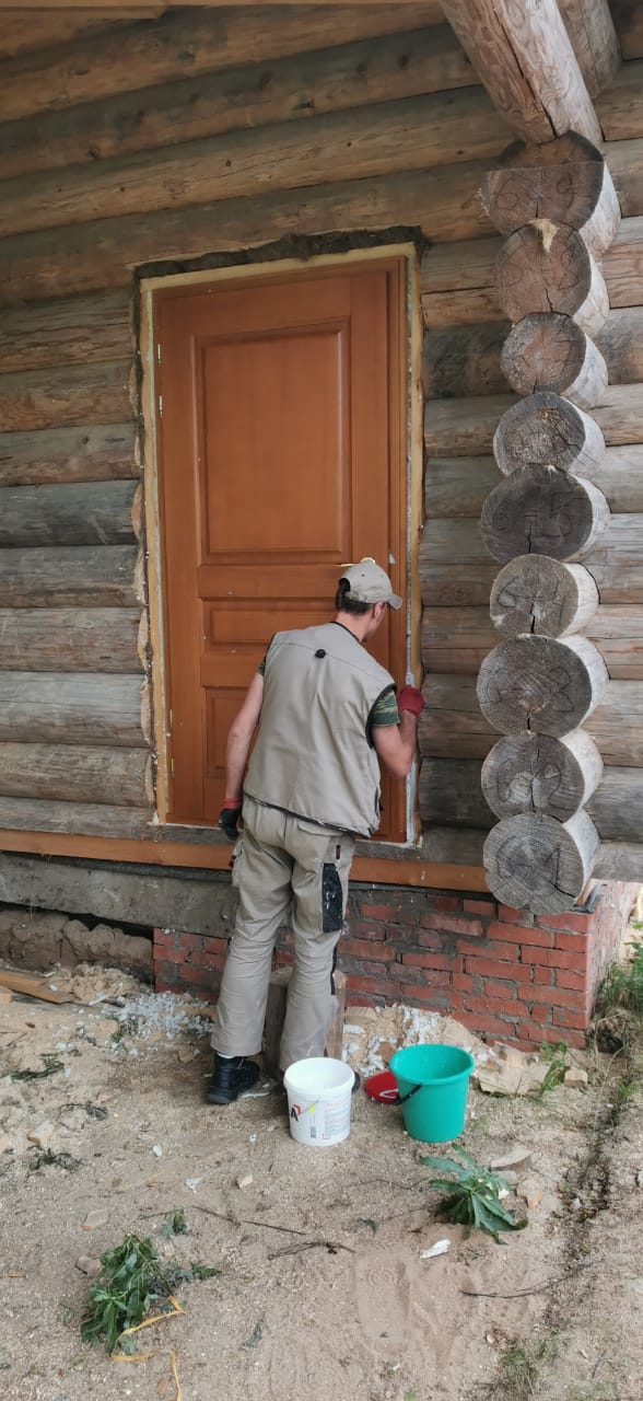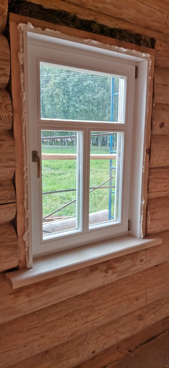 Изготовлены и установлены оконные блоки из сосны и входные двери из лиственницы.